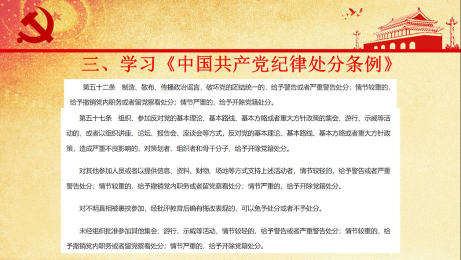 按照上级党组织要求,也为进一步增强学生党员学习、遵守、贯彻与维护党章党规的政治自觉和行动自觉,帮助党员以实际行动争做优秀党员。支部从《中国共产党廉洁自律准则》和《中国共产党纪律处分条例》中节选部分与学生党员相关事项,组织全体学生党员同志共同学习。