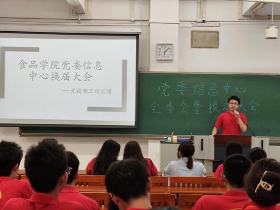 然后是第15届主任团成员陈始龙上台发言。他讲到加入了党委信息中心这个组织,提高了自身的党性修养和思想觉悟,在接下来的日子里,会继续努力,吸取上一年的工作经验,让党信发展得更好。