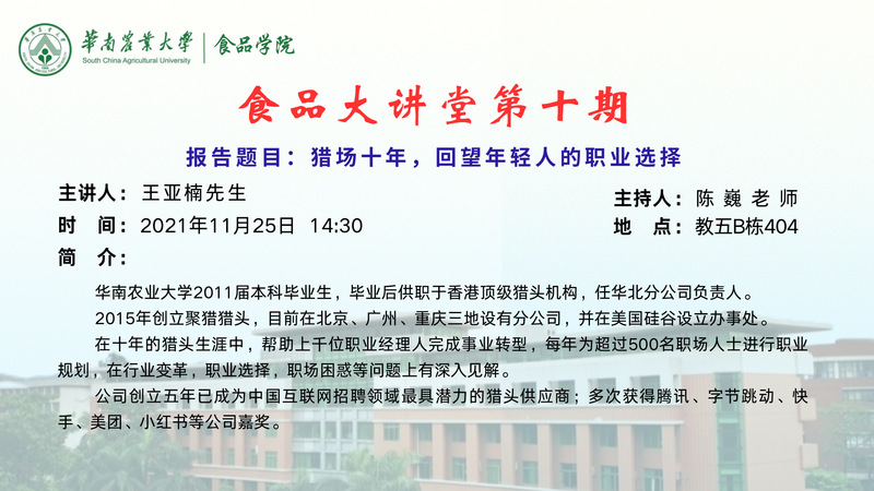 食品大讲堂第十期:猎场十年,回望年轻人的职业选择