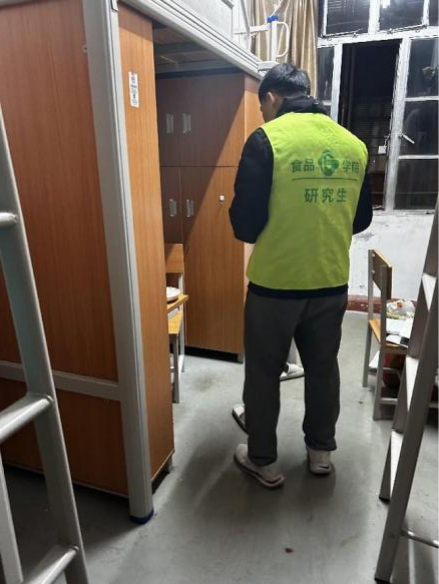 冬去春来二月到,同学们又迎来了新的学期。宿舍安全无小事,细心防范第一位。为增强同学们的宿舍安全与卫生意识,强化宿舍管理,进一步加强美丽校园和安全校园建设,太阳成集团tyc9728研究生会工作人员和志愿者在曹欣妮老师的带领下,于2024年2月25日对小五山、燕山、留学生宿舍区开展了本学期第一次消防安全及卫生抽查工作。