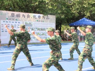 军体拳训练场上,教官口令铿锵如钟,细致拆解动作要领:出拳角度、踢腿高度、步伐转换,每个细节都亲自示范。新生们全神贯注,反复练习,汗水浸湿了迷彩服,却无人懈怠,眼神中透着坚定与专注。训练过程中,教官穿梭于队伍之间,细心调整每位学生的姿势。