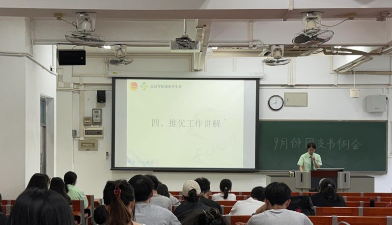 随后,学院团学组织部负责人提醒各班团支部注意基础团务工作的相关事项,简述了每月团费缴纳的周期与流程,强调需按时对智慧团建进行业务审核。接着,负责人就团支书工作手册内容要求及推优入党工作展开详细讲解。团支书工作手册包含了三会两制一课、团日活动等重要内容,是指导团支部书记及其委员会成员规范、高效地开展基层共青团工作的综合性工作指南和实务操作规范。最后,负责人着重阐述了推优工作的类别、要求以及流程,倡导基层干部持续强化学习,提升推优能力。