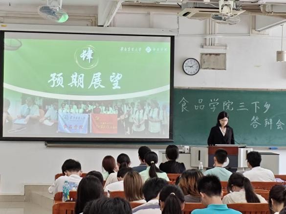 讲台上,同学们逻辑清晰、自信从容。从河源义合镇的灵芝产业调研,到连平鹰嘴蜜桃的包装升级;从遵义保丰小学的爱心支教,到清远东江村的墙绘艺术;从食品安全科普到红色文化传承……他们立足专业、深入基层,用脚步丈量土地,用智慧服务乡村,充分展现了食品学子扎实的专业素养和深厚的家国情怀。