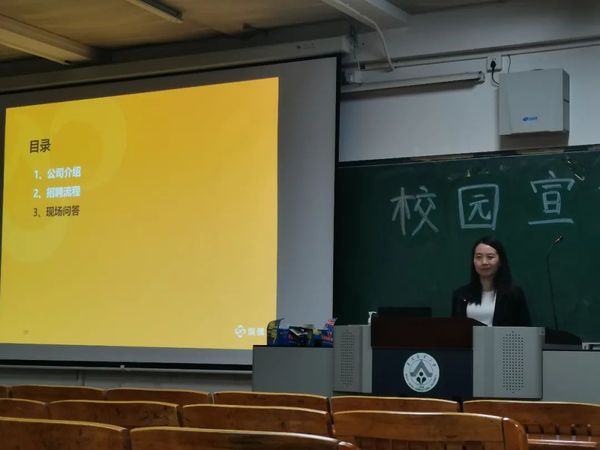 首先,主持人先以“我们是谁”介绍了南侨集团。南侨集团发展历史悠长,业务范围分布在全球的许多国家,生产的产品种类广,涵盖了油脂、冰品等事业。接着,主持人向同学们介绍了南侨集团“做了什么”,南侨集团致力于分享产品技术,树立业界标杆。南侨集团的合作伙伴众多,与许多烘焙业、食品业企业如奈雪的茶、巴黎贝甜、康师傅等企业都有合作关系。接下来,主持人向同学们介绍了南侨集团的福利待遇、个人职业发展,并向同学们介绍了招聘的岗位以及招聘流程。最后是现场问答环节,主持人热情回答了同学们关于岗位职责等等问题。
