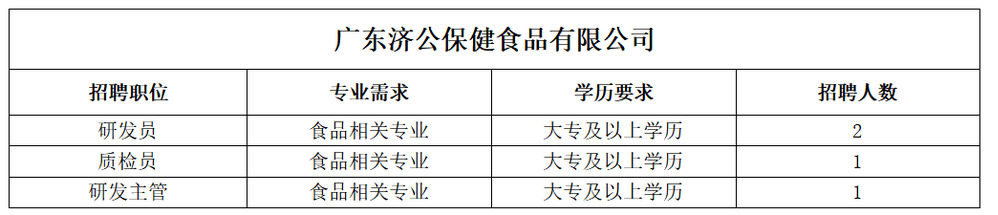 广东济公保健食品有限公司,是一家集研究、生产、销售佛手制品为主导的保健食品企业,荣获“广东老字号”、“高新技术企业”、“广东省农业龙头企业”等称号。公司主营产品有济公喉宝、济公开胃丸、加应子、各式软糖硬糖、果冻等,畅销海内外市场。现因市场发展需要,诚邀您的加入,共创美好明天!