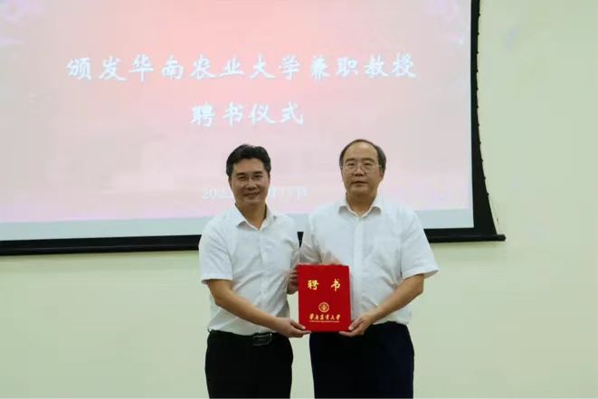 10月17日,太阳成集团tyc9728第十八期食品大讲堂在食品院楼212报告厅顺利举行。本次食品大讲堂邀请了潘建国老师为同学们解码预制菜。华南农业大学党委常委、副校长钟强出席此次讲座,宣读了《关于聘请潘建国为我校兼职教授的决定》并颁发聘书。