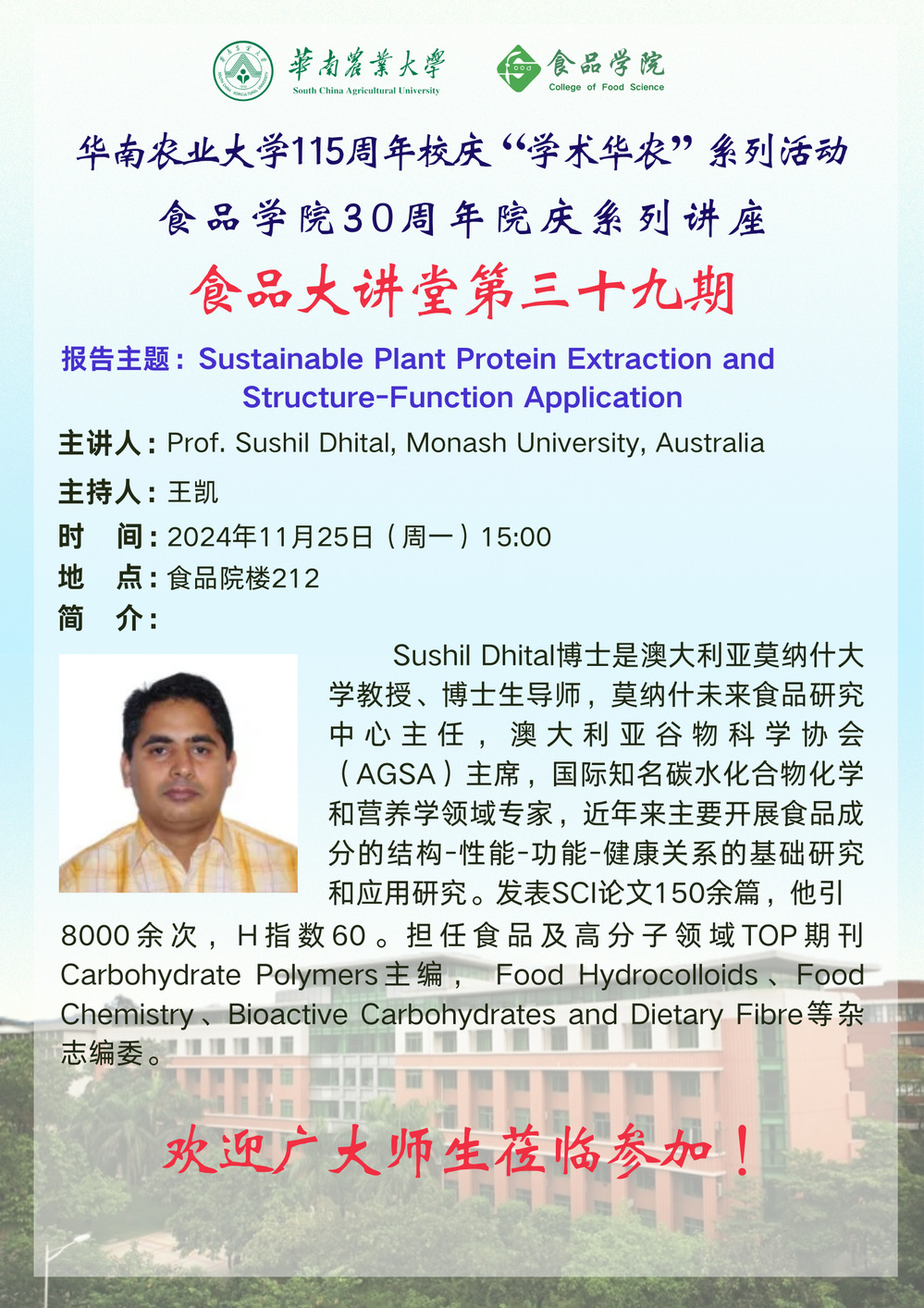 Prof. Sushil Dhital老师——食品大讲堂第三十八期