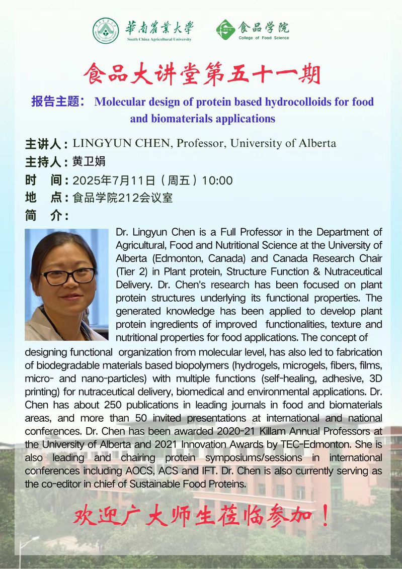 食品大讲堂第五十一期:Molecular design of protein based hydr...
