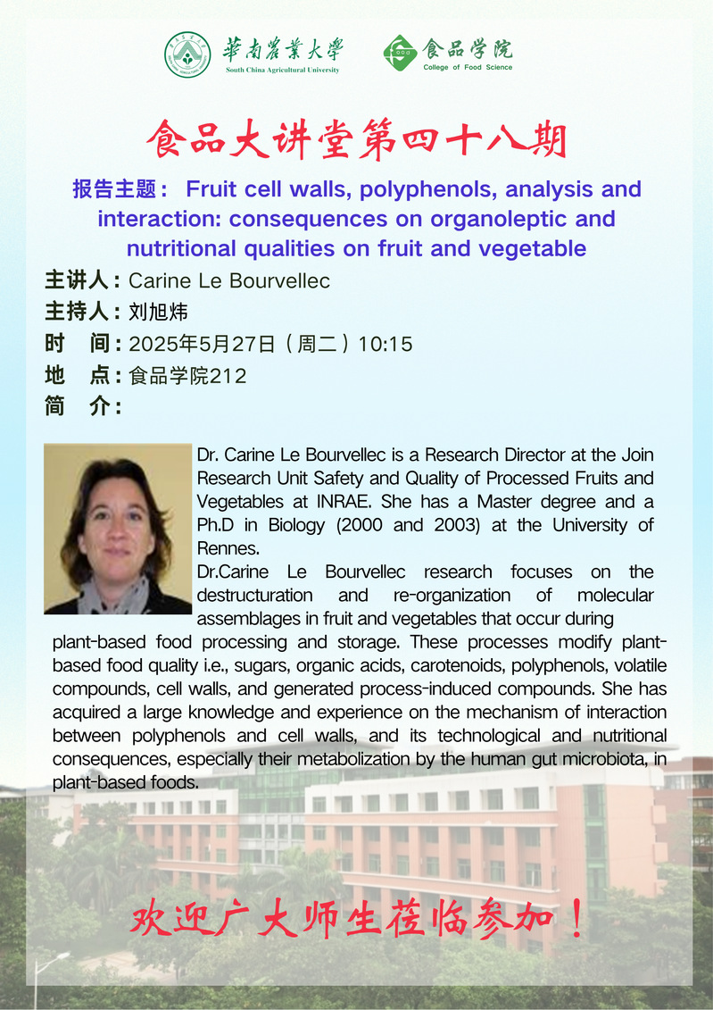 食品大讲堂第四十八期:Fruit cell walls, polyphenols, analysi...