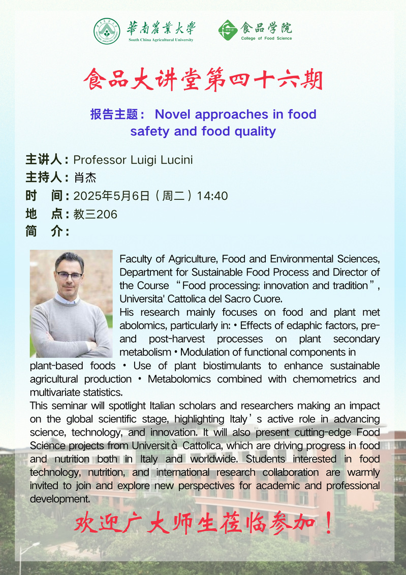 食品大讲堂第四十六期:Novel approaches in food safety and fo...